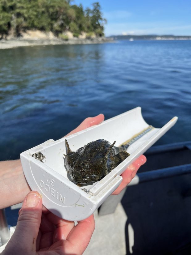 Conducting fieldwork as part of a project funded by Washington Sea Grant, Emily Bishop, a masters student in the Marine Conservation and Ecology Group at SAFS, is exploring the effects of shoreline armoring on nearshore fish abundance.