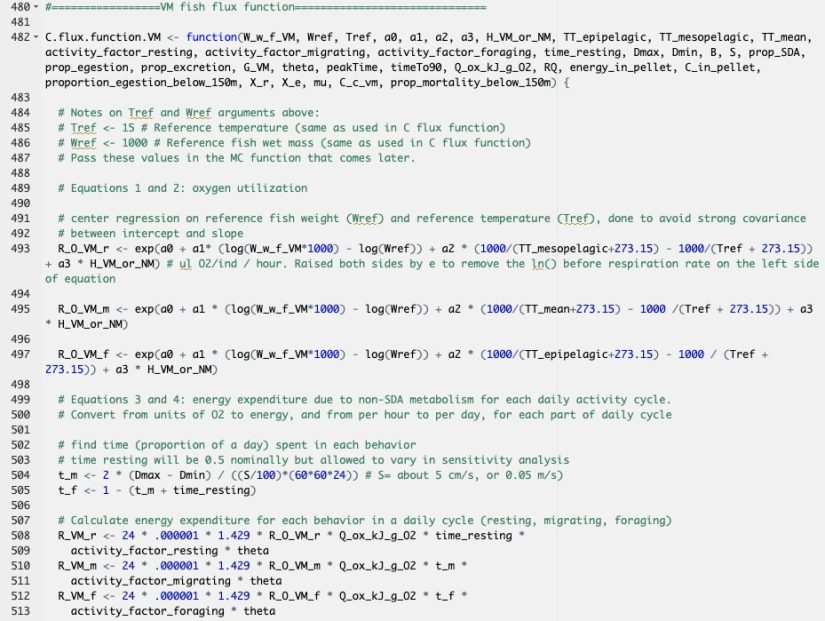 One of the most abundant types of mesopelagic fishes that performs this daily migration is the lanternfish (not to be confused with the rarer anglerfish), a family of fish that includes almost 250 species. With my colleagues Tim Essington (SAFS), Joel Llopiz (Woods Hole Oceanographic Institution) and Ray Hilborn (SAFS), we found that estimations of how much carbon a single fish, like a lanternfish, transports each day into the twilight zone is associated with about a 6 fold uncertainty (McMonagle et al. 2023), which can be constrained a little further with great data coverage from the specific location where you’re estimating the carbon transport of that fish. Even then, scaling up to how much carbon entire populations of these fishes transport requires fish biomass estimation at a given study site, and biomass estimation is associated with even more uncertainty than all the bioenergetic uncertainties for an individual fish combined, based on preliminary results from a study that our team is currently working on.
