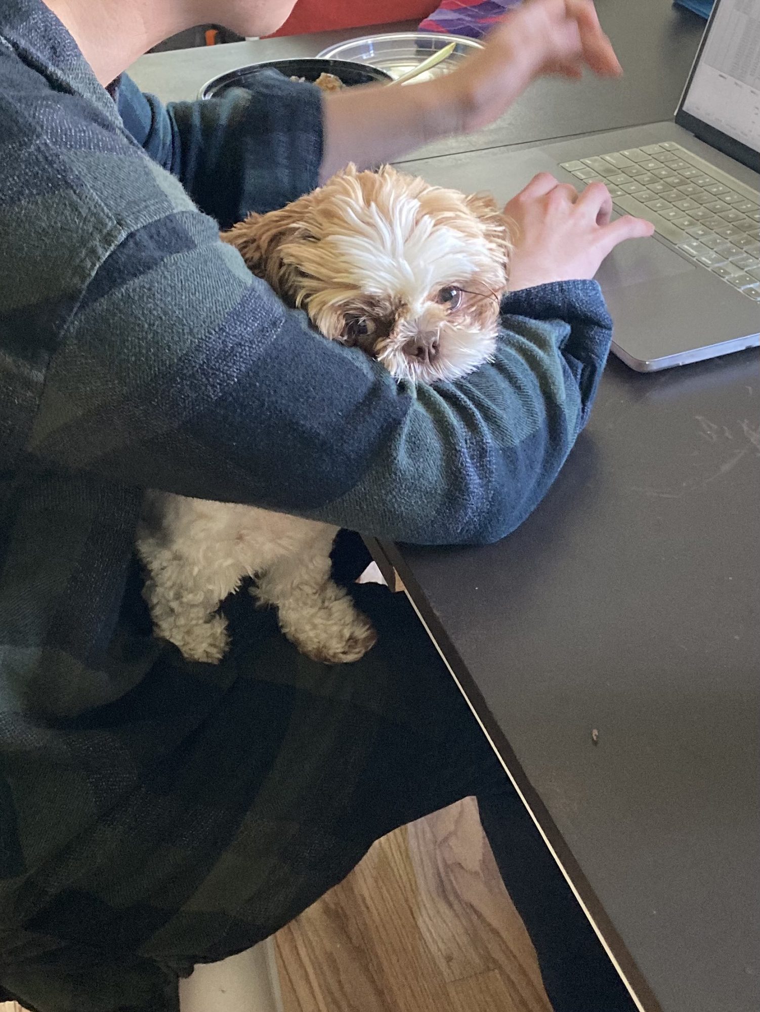 Michael’s roommate’s dog Bean makes a great co-worker while working from home