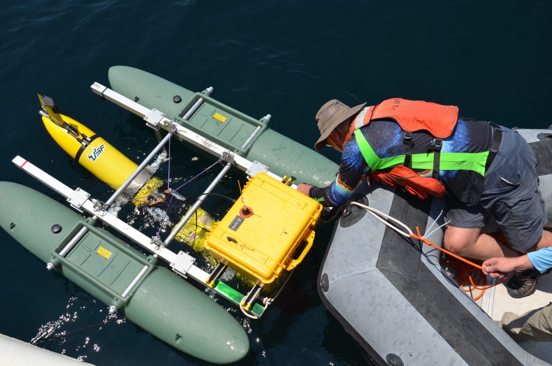 John believes the value of this new glider technology will become even more apparent by pairing it with other emerging technologies. A parallel experiment aboard the R/V Point Sur, executed by the National Geographic Exploration Technology Lab, tested a network of underwater driftcams. These stereo and video cameras are encased in waterproof housings and can be controlled through an underwater acoustic modem to visually monitor different depths. Acoustic information collected by the glider, as well as instruments aboard the R/V Point Sur and an at depth CTD, can all be relayed to the driftcams.